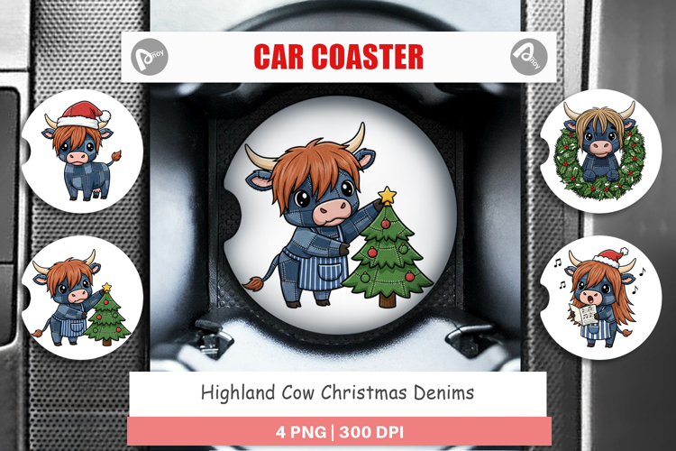 Sublimation Designs Diy Gift Idea Car Coaster Png Car Coaster Sublimation Cow Lover Gift Printable Gift Png Farmhouse Car Accessory Highland Cow Denim Farm Animal Car Decor Denim Cow Design