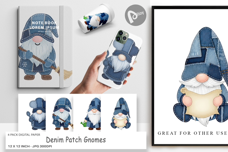 Similar Design Products to Denim Patch Gnomes Digital Paper