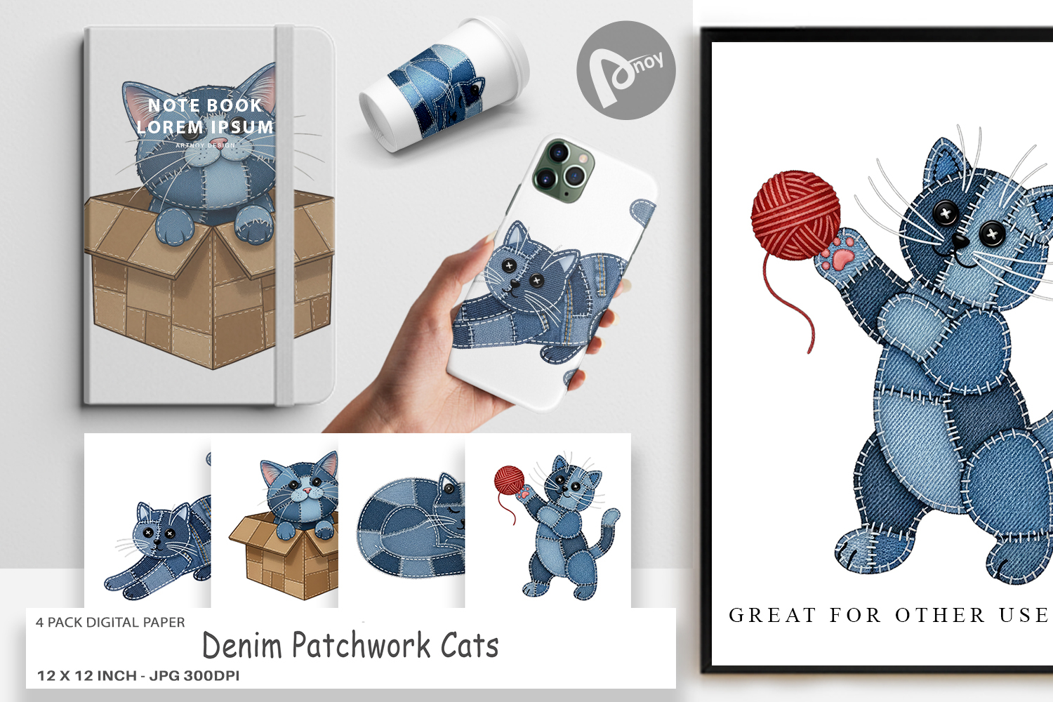 Similar Design Products to Denim Patchwork Cats Digital Paper