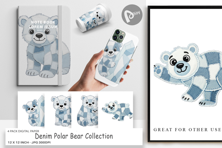 Digital Background Christmas Background Printable Scrapbook Paper Digital Paper Bundle Junk Journal Kit Diy Craft Supplies Sublimation Paper Background Arctic Animal Paper Denim Polar Bears Winter Animal Craft