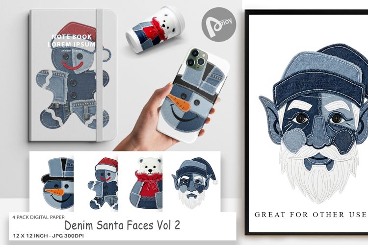 Digital Background Craft Paper Printable Scrapbook Paper Junk Journal Digital Paper Bundle Holiday Craft Paper Winter Scrapbook Page Sublimation Paper Background Denim Holiday Faces Christmas Character Art