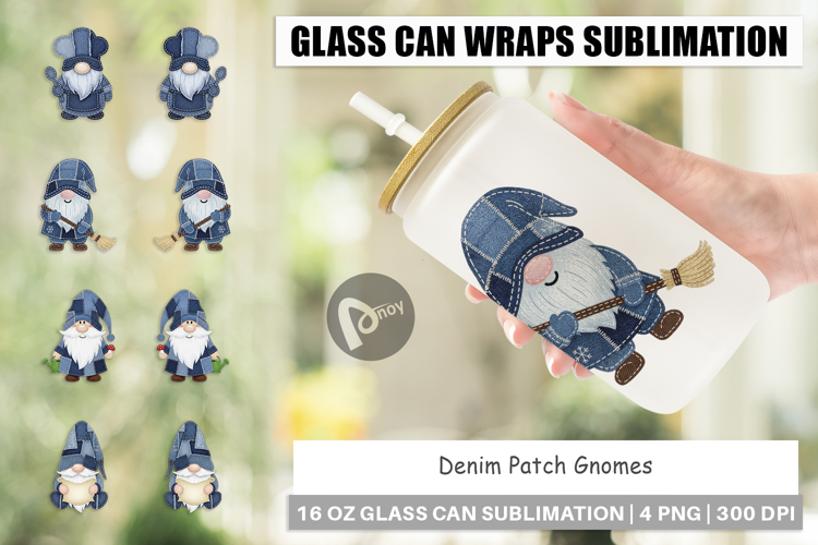 Sublimation Designs Diy Gift Idea Holiday Gift Idea Libbey Glass Sublimation Glass Can Wrap Png Printable Cup Wrap Denim Patch Gnomes Denim Gnome Design Gnome Libbey Can Wrap Christmas Gnome Cup