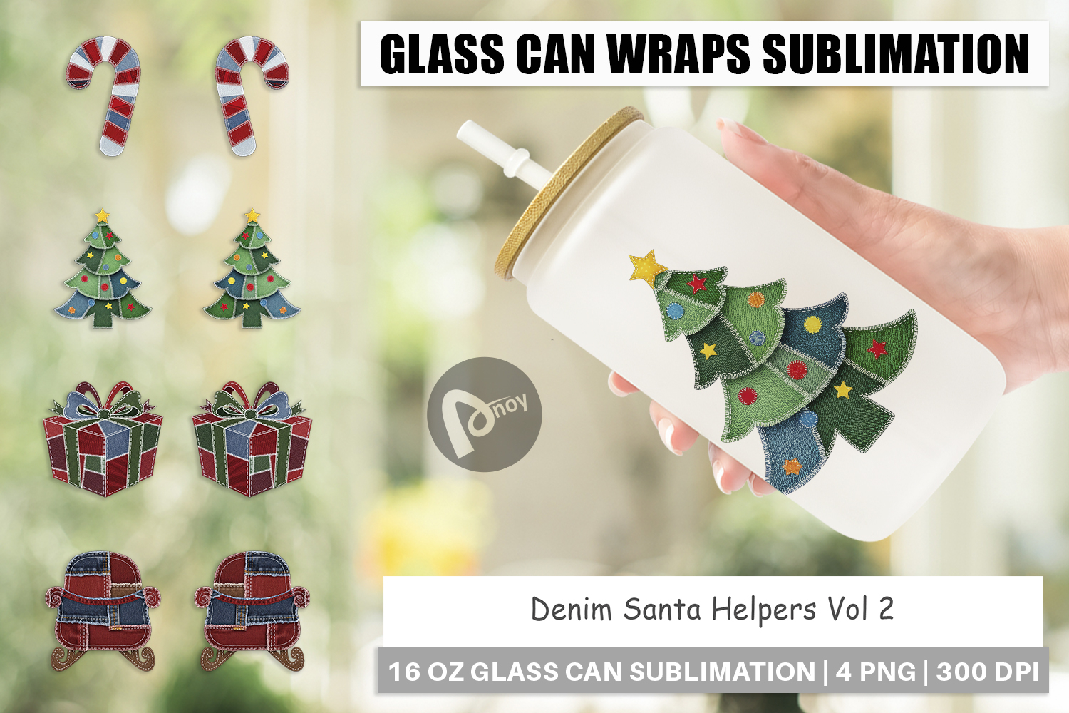 Sublimation Designs Diy Gift Idea Holiday Gift Idea Libbey Glass Sublimation Glass Can Wrap Png Printable Cup Wrap Santa Helpers Denim Denim Christmas Art Christmas Elf Cup Elf Libbey Can Wrap