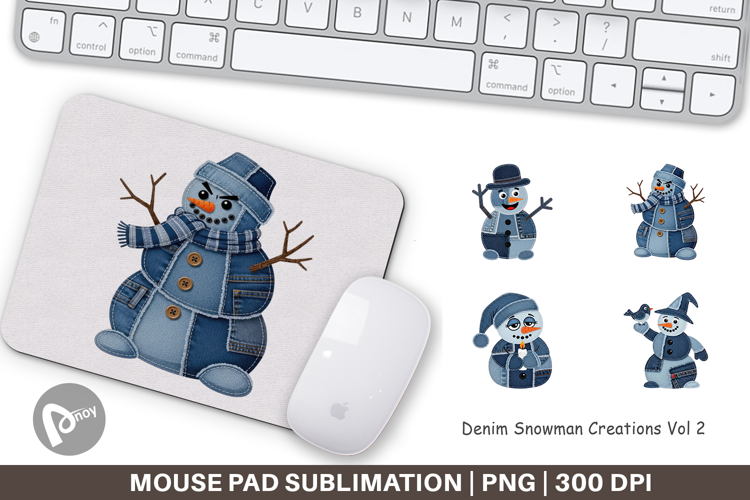 Sublimation Designs Diy Gift Idea Mouse Pad Sublimation Christmas Office Decor Mouse Pad Png Winter Holiday Gift Denim Collage Art Denim Snowman Collage Printable Desk Gift Snowman Desk Accessory