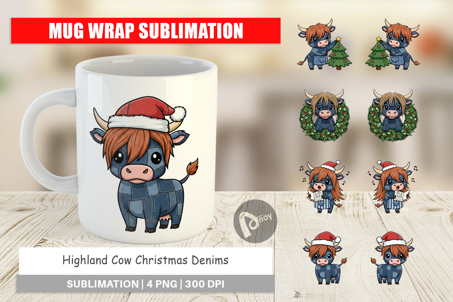 Coffee Cup Design Sublimation Designs Mug Sublimation Design Mug Wrap Farmhouse Coffee Cup Printable Mug Template Cow Lover Gift Farm Animal Mug Highland Cow Denim Denim Cow Design