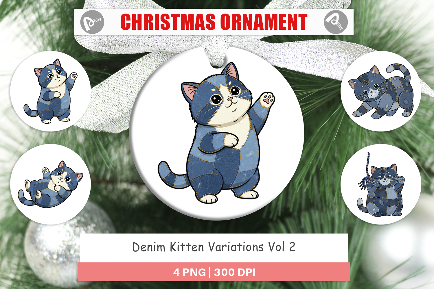 Sublimation Designs Cat Lover Gift Diy Gift Idea Ornament Design Png Round Ornament Sublimation Cute Cat Ornament Printable Gift Png Chubby Kitten Denim Denim Cat Christmas Gift Pet Ornament Gift
