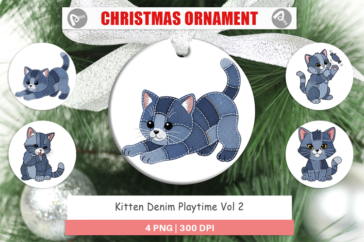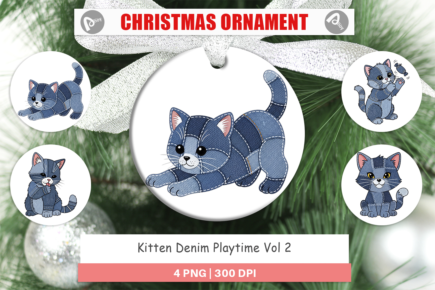 Sublimation Designs Cat Lover Gift Diy Gift Idea Ornament Design Png Round Ornament Sublimation Cute Cat Ornament Printable Gift Png Kitten Denim Playtime Playful Kitten Gift Denim Pet Ornament