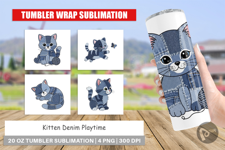 Sublimation Designs Cat Lover Gift Diy Gift Idea Tumbler Sublimation Design Tumbler Wrap Png Cute Cat Tumbler Wrap Printable Tumbler Art Kitten Denim Playtime Playful Kitten Tumbler Denim Pet Tumbler