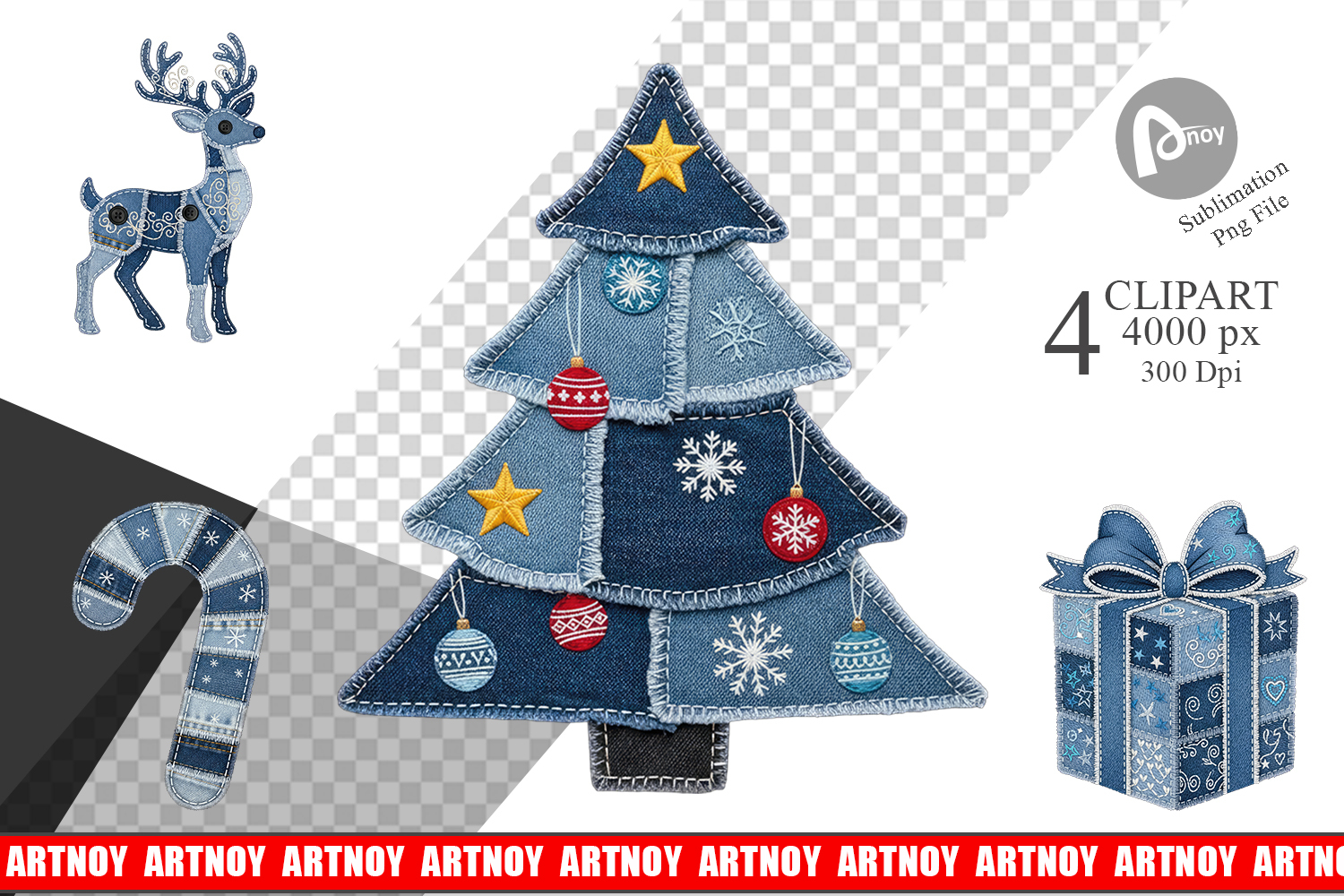 Scrapbook Elements Digital Clipart Printable Stickers Sublimation Designs Christmas Craft Supply Holiday Clipart Bundle Diy Junk Journal Clipart Bundle Png Denim Christmas Applique Denim Applique Art