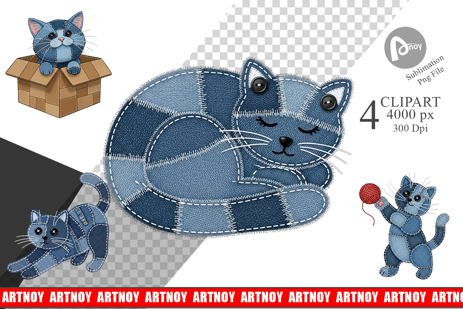 Scrapbook Elements Digital Clipart Printable Stickers Sublimation Designs Clipart Bundle Png Cute Pet Design Cat Lover Graphics Patchwork Cat Clipart Denim Patchwork Cats Denim Cat Png