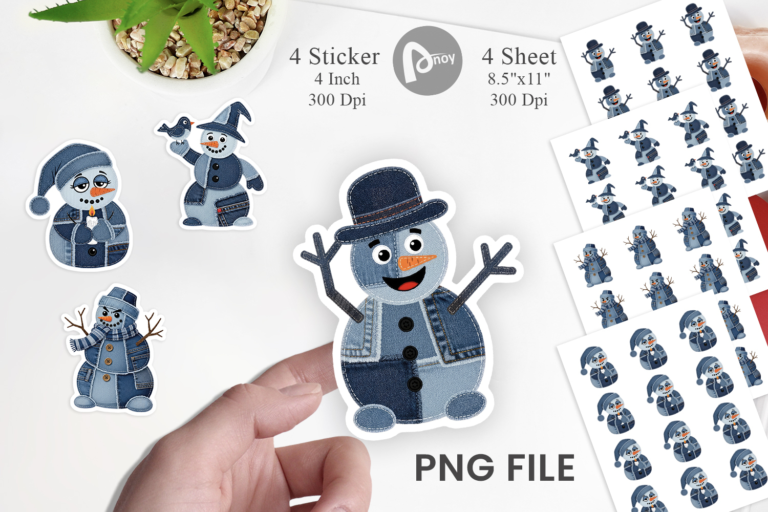 Planner Stickers Journal Stickers Printable Sticker Sheet Snowman Sticker Sheet Digital Sticker Pack Denim Collage Art Denim Snowman Collage Christmas Planner Decor Diy Craft Stickers Winter Holiday Planner