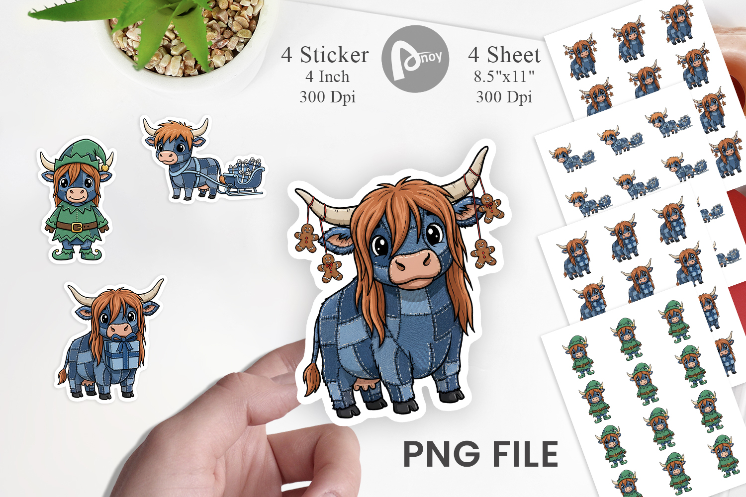 Planner Stickers Journal Stickers Printable Sticker Sheet Digital Sticker Pack Cow Lover Gift Farm Animal Sticker Highland Cow Denim Diy Craft Stickers Farmhouse Planner Decor Denim Cow Png