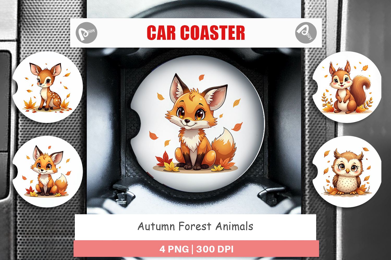 Sublimation Designs Woodland Animal Art Car Coaster Png Car Coaster Sublimation Cute Animal Design Diy Car Decor Printable Gift Png Fall Car Accessory Forest Animals Coaster Autumn Theme Gift