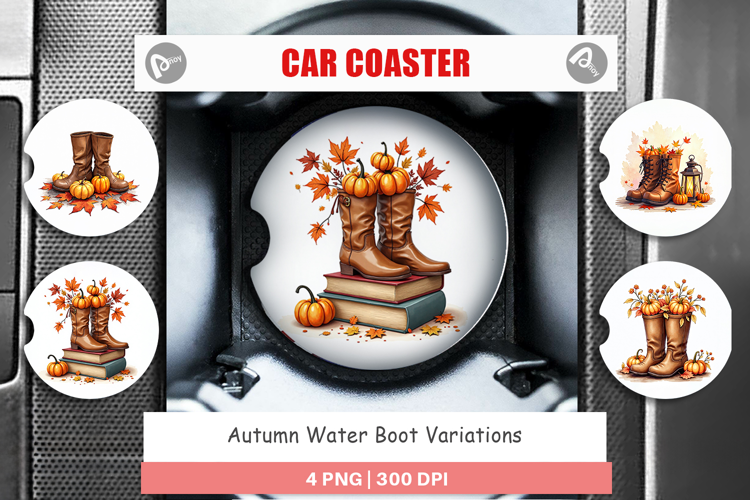 Sublimation Designs Car Coaster Png Car Coaster Sublimation Gift For Gardener Cute Fall Decor Diy Car Accessory Printable Gift Png Cozy Autumn Coaster Autumn Water Boot Fall Rain Boot Design