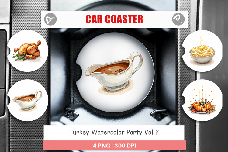 Sublimation Designs Car Coaster Png Car Coaster Sublimation Thanksgiving Coaster Diy Holiday Decor Cute Animal Gift Printable Gift Png Turkey Party Design Watercolor Turkey Art Fall Party Favor