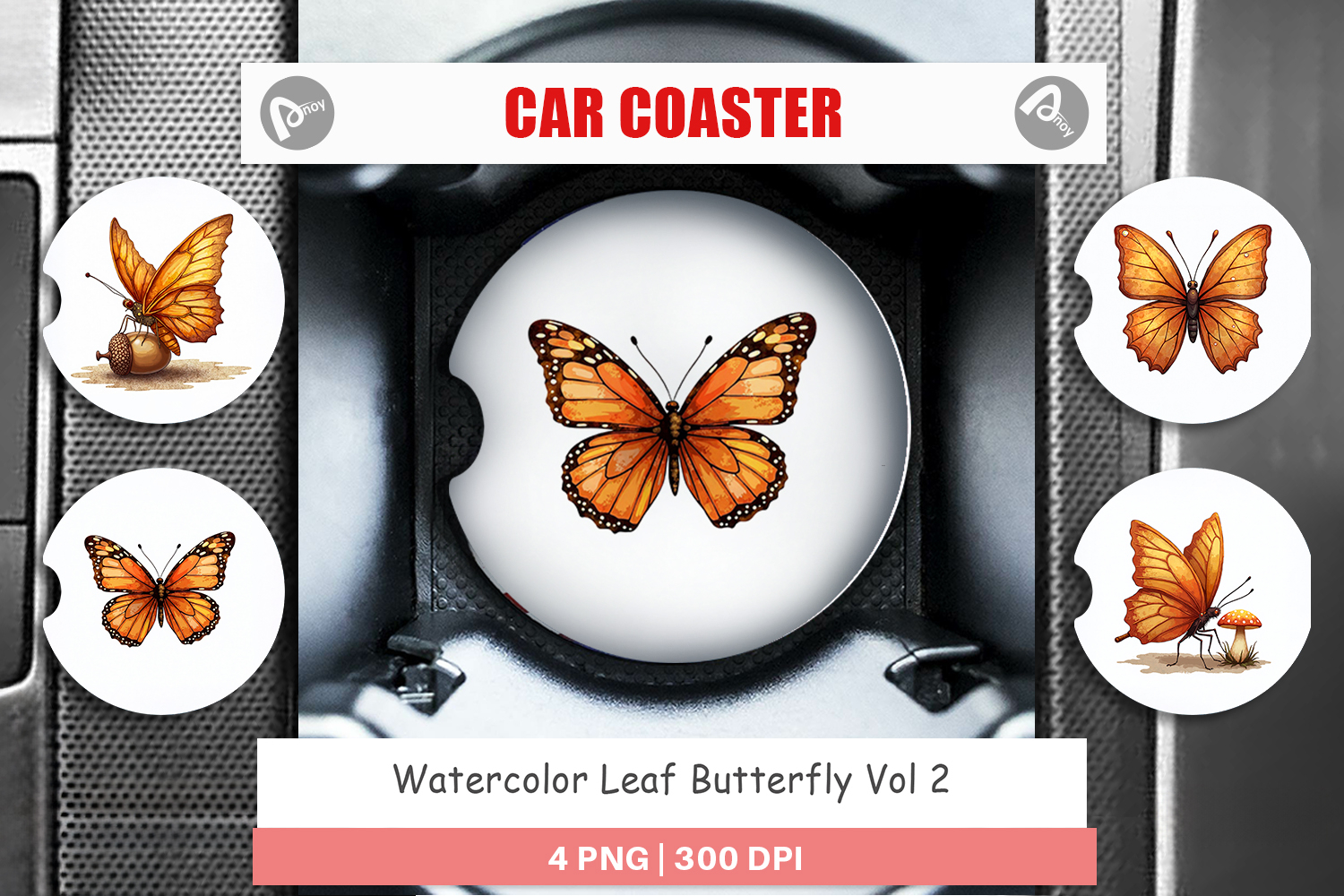 Gift For Nature Lover Sublimation Designs Car Coaster Png Car Coaster Sublimation Printable Gift Png Diy Coaster Gift Leaf Butterfly Design Autumn Butterfly Art Fall Nature Theme Whimsical Car Decor