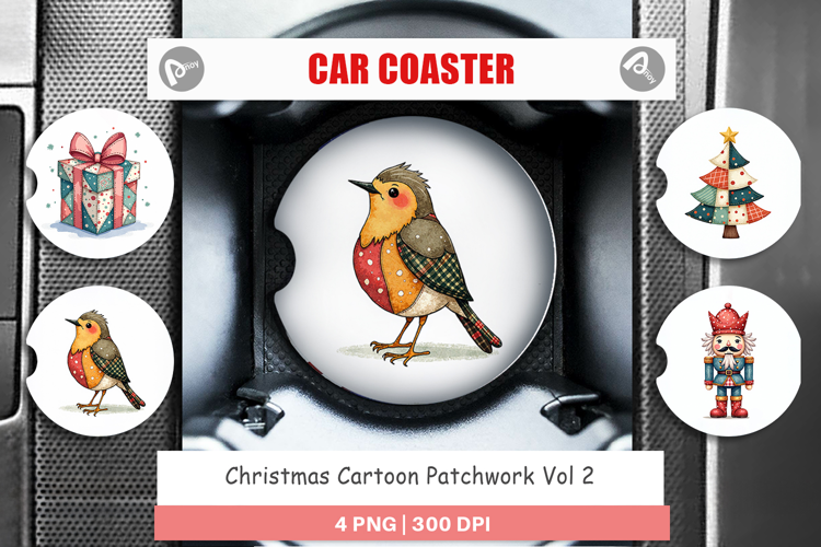 Christmas Cartoon Patchwork Car Coaster example image 1