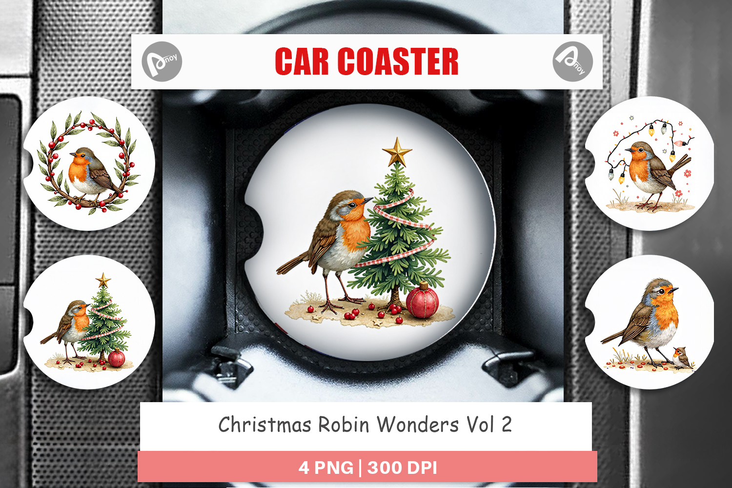 Christmas Robin Wonders Car Coaster example image 1