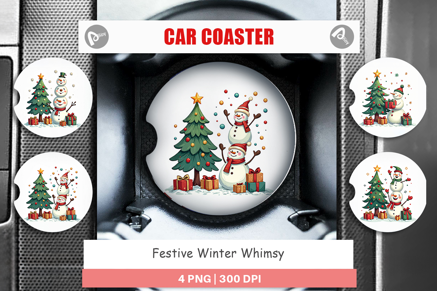Sublimation Designs Car Coaster Png Car Coaster Sublimation Festive Winter Design Diy Holiday Craft Whimsical Christmas Art Printable Gift Png Seasonal Car Accessory Winter Whimsy Coaster Holiday Cheer Gift