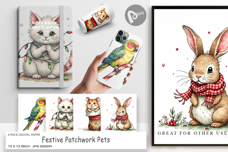 Similar Design Products to Festive Patchwork Pets Digital Paper