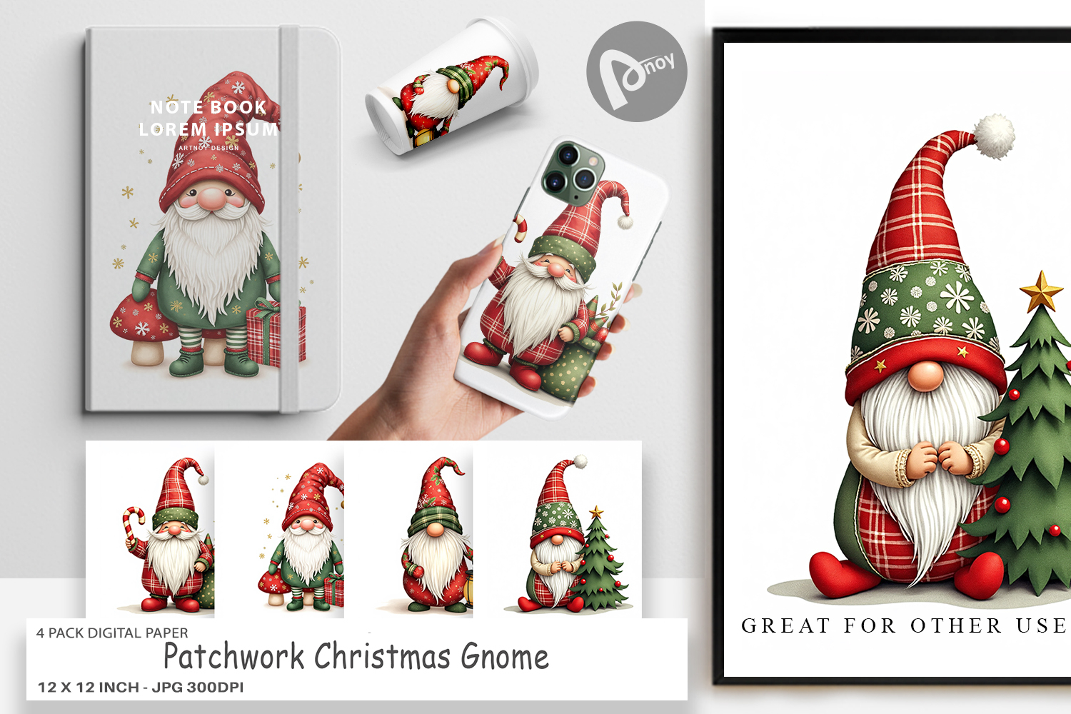 Similar Design Products to Patchwork Christmas Gnome Digital Paper