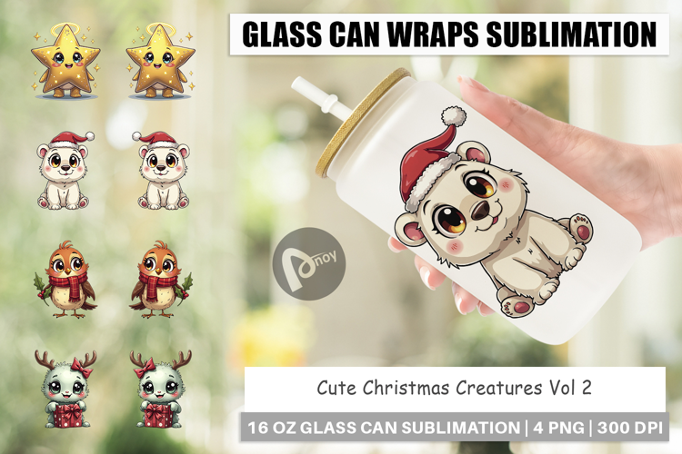 Cute Christmas Creatures Glass Can example image 1