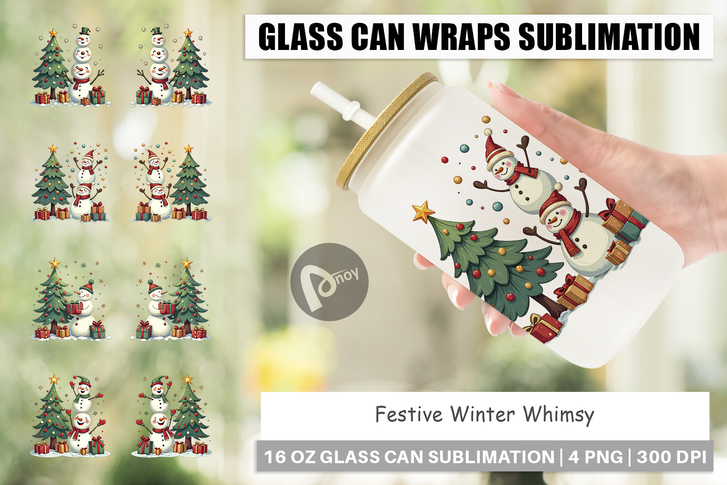 Diy Sublimation Gift Iced Coffee Cup Libbey Glass Sublimation Glass Can Wrap Png Printable Can Wrap Whimsical Christmas Art Winter Whimsy Glass Festive Winter Wrap Holiday Cheer Cup Seasonal Glassware Gift