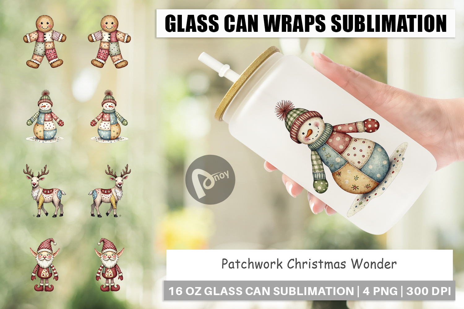 Diy Sublimation Gift Iced Coffee Cup Libbey Glass Sublimation Glass Can Wrap Png Printable Can Wrap Patchwork Christmas Art Holiday Craft Gift Christmas Wonder Glass Festive Patchwork Cup Winter Season Glassware