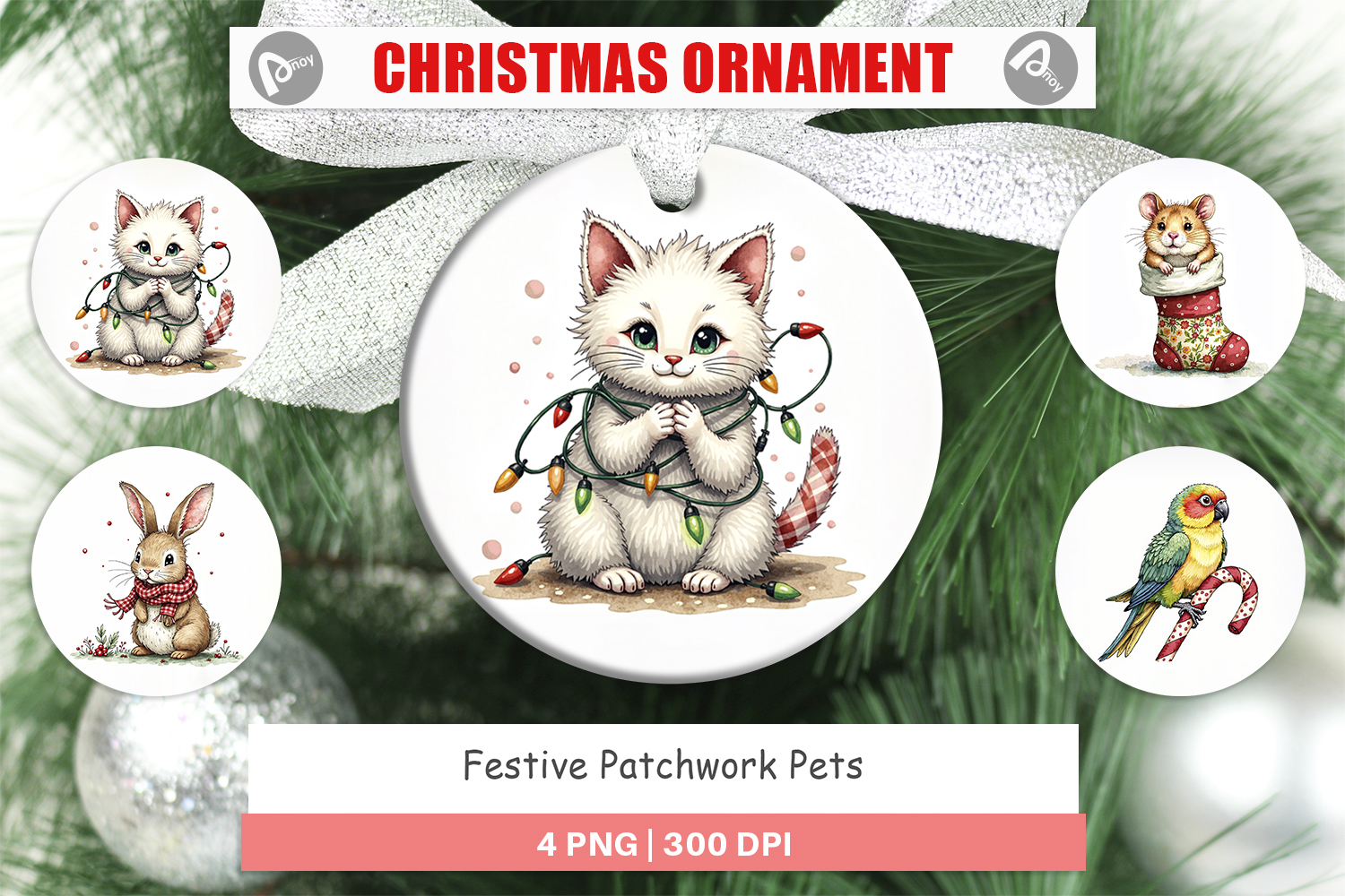 Pet Owner Gift Ornament Design Png Printable Ornament Diy Sublimation Gift Round Ornament Sublimation Holiday Animal Ornament Festive Pet Design Christmas Patchwork Art Patchwork Pets Ornament Cute Pet Decor