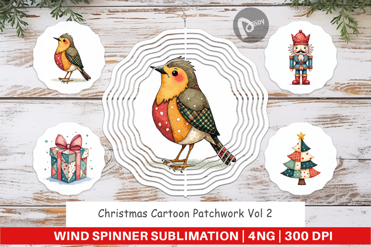 Christmas Cartoon Patchwork Wind Spinner example image 1
