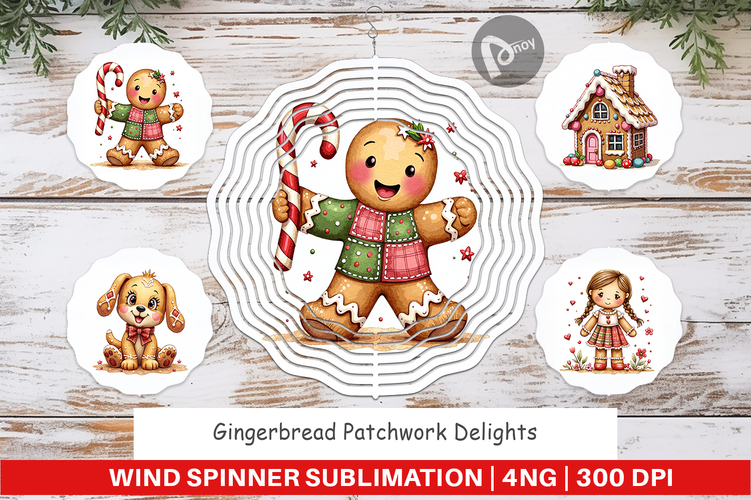 Christmas Gingerbread Diy Sublimation Gift Wind Spinner Sublimation Sublimation Spinner Design Festive Baking Theme Baker Gift Idea Gingerbread Patchwork Holiday Foodie Gift Printable Spinner Png Patchwork Cookie Art