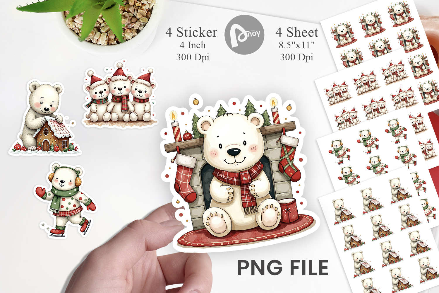 Planner Stickers Scrapbook Stickers Journal Stickers Christmas Polar Bear Printable Sticker Sheet Holiday Season Sticker Winter Wonderland Theme Festive Polar Sticker Polar Wonders Decal Arctic Animal Planner