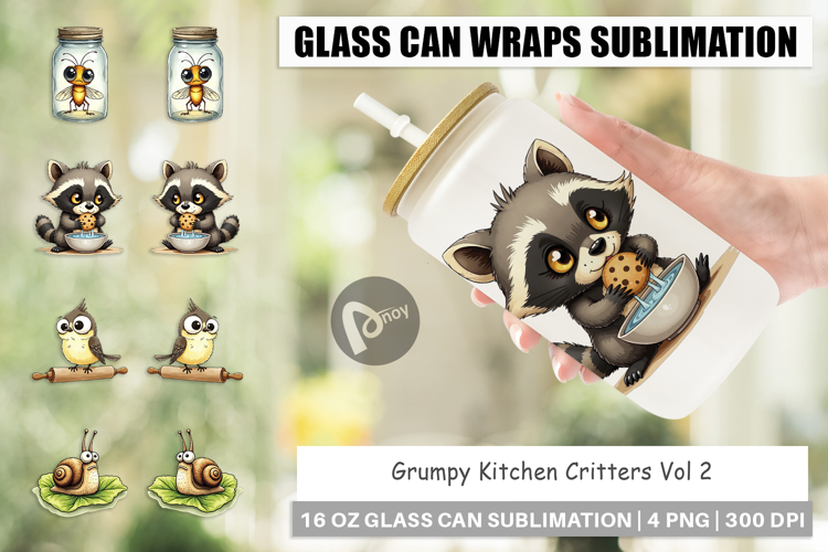 Animal Lover Gift Iced Coffee Cup Libbey Glass Sublimation Glass Can Wrap Png Printable Gift Idea Soda Can Glass Funny Animal Tumbler Gift For Home Cook Grumpy Kitchen Critters Sarcastic Kitchen Gift