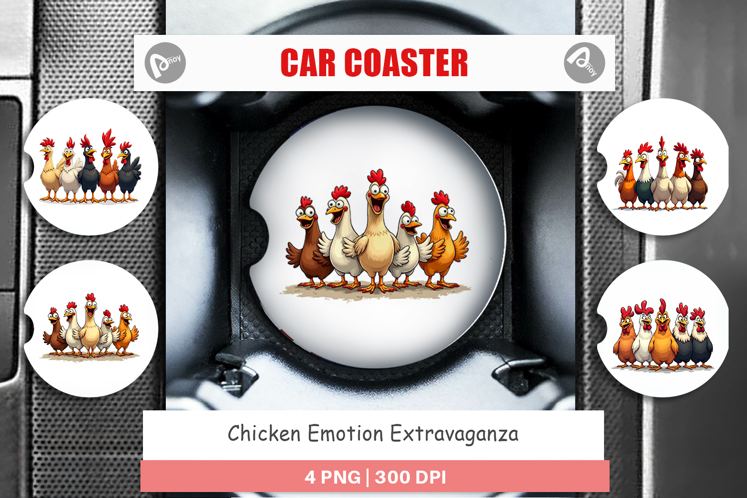 Sublimation Designs Printable Png Car Coaster Png Car Coaster Sublimation Gift For Farmer Cute Car Decor Farm Animal Accessory Diy Car Gift Chicken Emotion Design Funny Chicken Faces