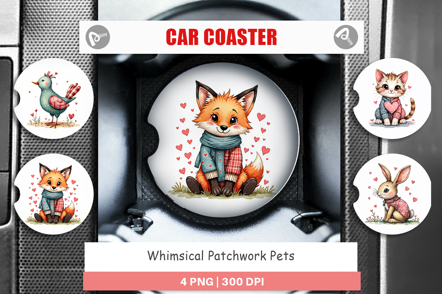 Sublimation Designs Printable Png Diy Gift Idea Car Coaster Png Car Coaster Sublimation Patchwork Animals Kids Car Accessory Cute Pet Lover Gift Whimsical Pets Design Stitched Pet Coaster