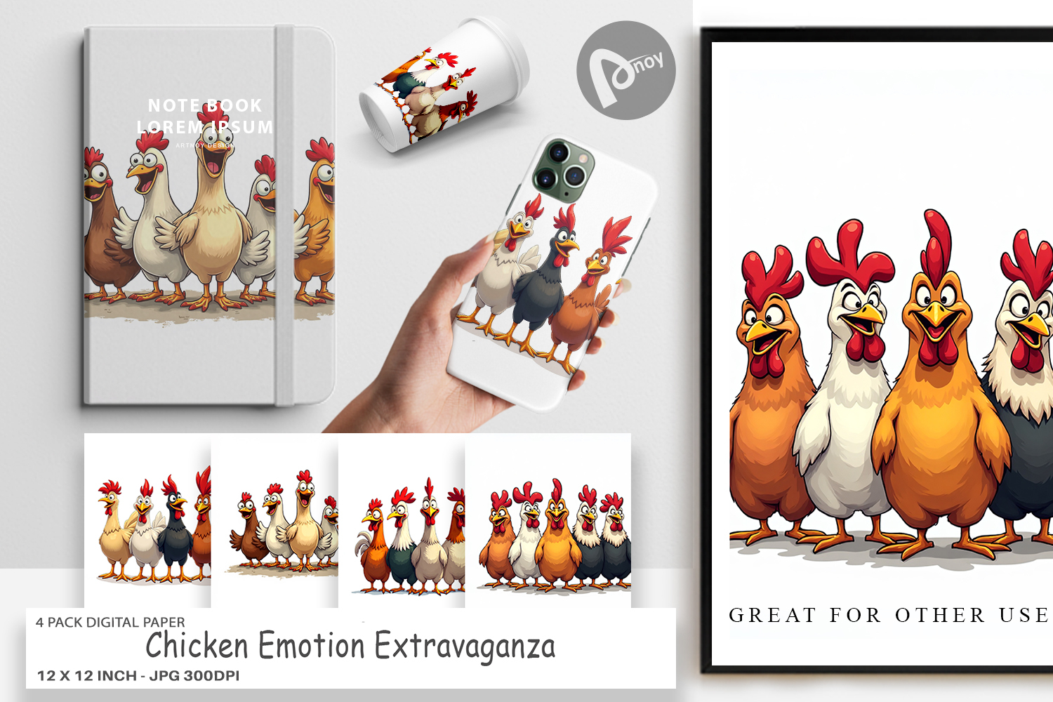 Digital Background Craft Paper Printable Scrapbook Paper Digital Paper Bundle Gift For Farmer Farm Animal Paper Junk Journal Supply Sublimation Paper Background Funny Chicken Faces Chicken Emotion Background