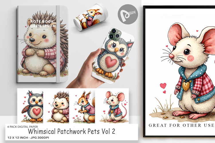 Similar Design Products to Whimsical Patchwork Pets Digital Paper
