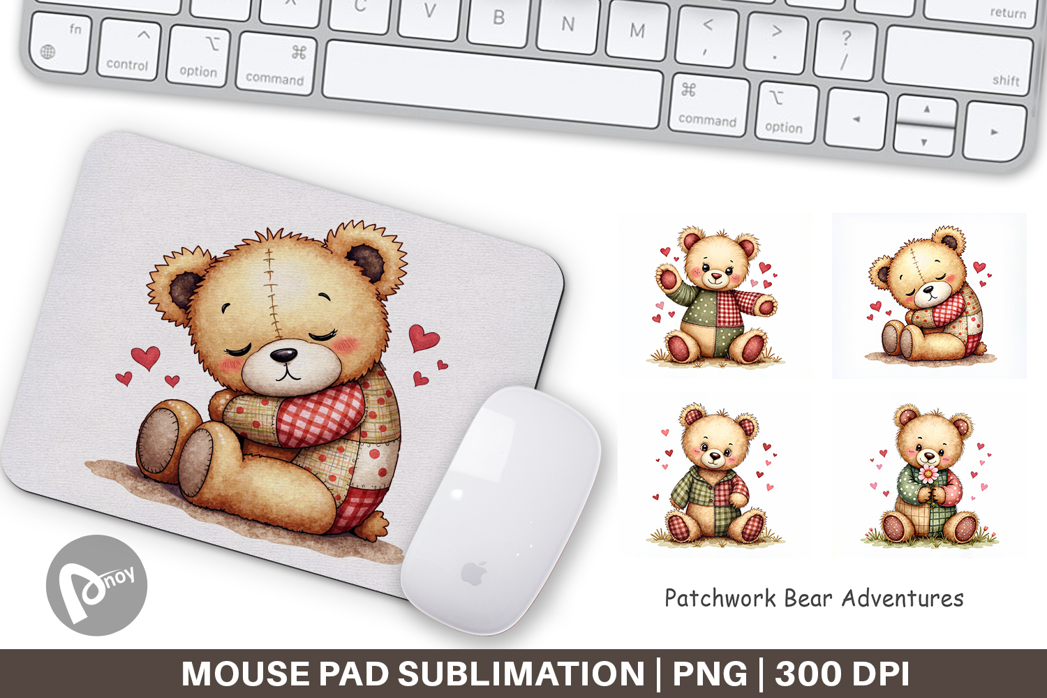 Sublimation Designs Mouse Pad Sublimation Mouse Pad Png Printable Desk Mat Adventure Theme Gift Custom Computer Gift Patchwork Bear Mousepad Stitched Bear Desk Mat Woodland Office Decor Cute Kids Desk Mat