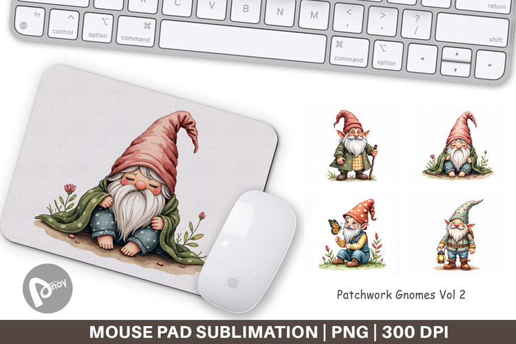 Sublimation Designs Mouse Pad Sublimation Cute Garden Gnome Mouse Pad Png Printable Desk Mat Custom Computer Gift Fantasy Office Decor Whimsical Desk Gift Patchwork Gnomes Pad Stitched Gnome Desk Mat