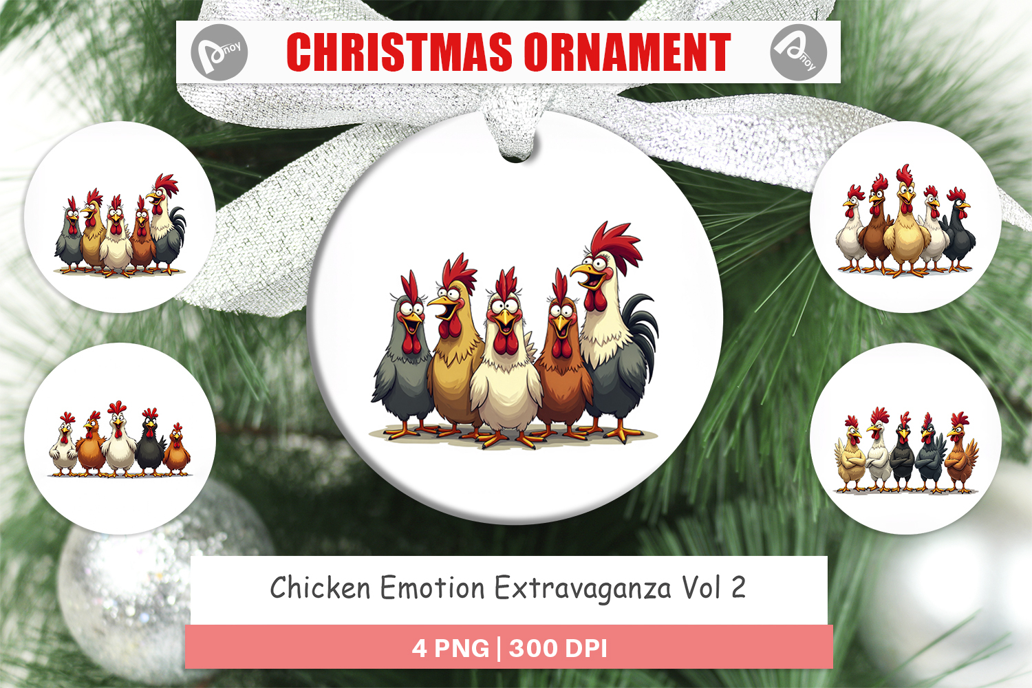 Sublimation Designs Diy Christmas Gift Gift For Farmer Funny Chicken Design Ornament Design Png Printable Ornament Round Ornament Sublimation Farm Animal Ornament Cute Holiday Decor Chicken Emotion Gift