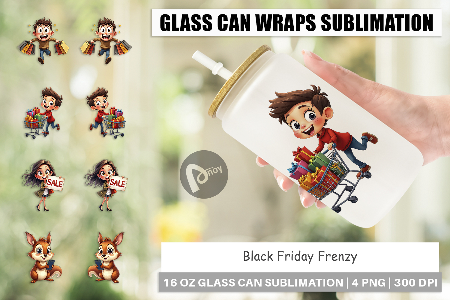 Black Friday Sale Sublimation Designs Diy Gift Idea Libbey Glass Sublimation Glass Can Wrap Png Printable Cup Wrap Black Friday Frenzy Gift For Shoppers Sale Event Craft Shopping Theme Glass