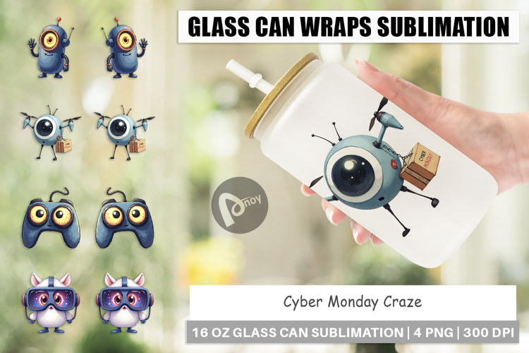 Sublimation Designs Cyber Monday Sale Diy Gift Idea Libbey Glass Sublimation Glass Can Wrap Png Printable Cup Wrap Cyber Monday Craze Gift For Tech Lover Tech Sale Craft Online Shopping Glass