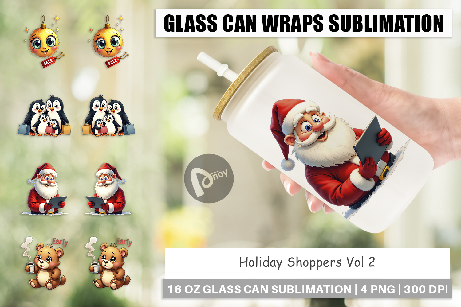 Sublimation Designs Holiday Shopping Diy Gift Idea Libbey Glass Sublimation Glass Can Wrap Png Printable Glass Wrap Gift For Shoppers Holiday Shoppers Theme Christmas Gift Craft Christmas Shopping Cup