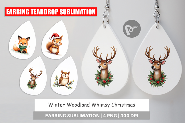 Sublimation Designs Winter Woodland Animals Earring Sublimation Designs Sublimation Earrings Png Christmas Animal Earring Cute Animal Jewelry Diy Holiday Gift Forest Animal Jewelry Printable Earring Png Woodland Creature Gift
