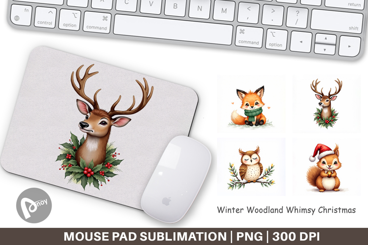 Sublimation Designs Mouse Pad Sublimation Winter Woodland Animals Mouse Pad Png Diy Holiday Gift Christmas Animal Mouse Pad Printable Desk Decor Cute Desk Accessory Woodland Creature Gift Forest Animal Office