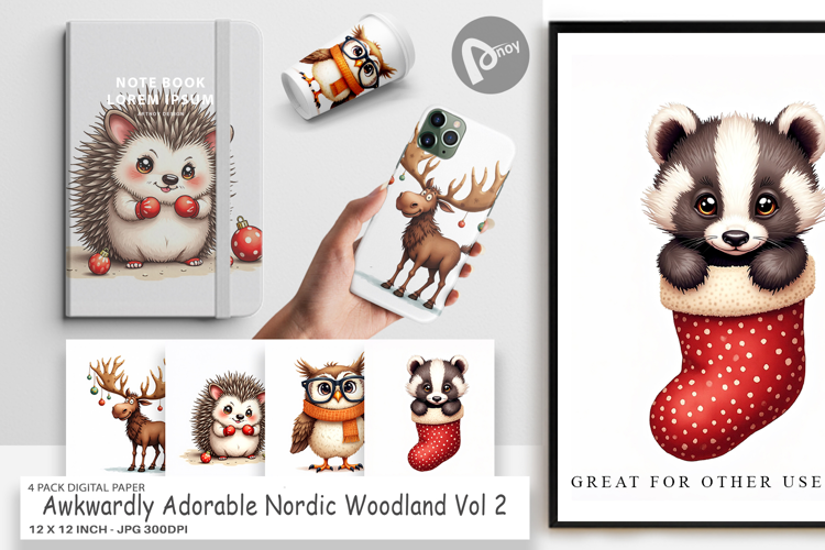 Digital Background Printable Scrapbook Paper Digital Paper Bundle Scrapbook Page Junk Journal Supply Sublimation Paper Background Nordic Woodland Design Adorable Animal Background Awkwardly Adorable Theme Woodland Craft Paper