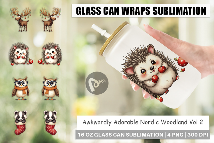 Gift For Nature Lover Sublimation Designs Diy Gift Idea Libbey Glass Sublimation Glass Can Wrap Png Printable Cup Wrap Woodland Theme Cup Awkwardly Adorable Gift Nordic Woodland Design Adorable Animal Glass