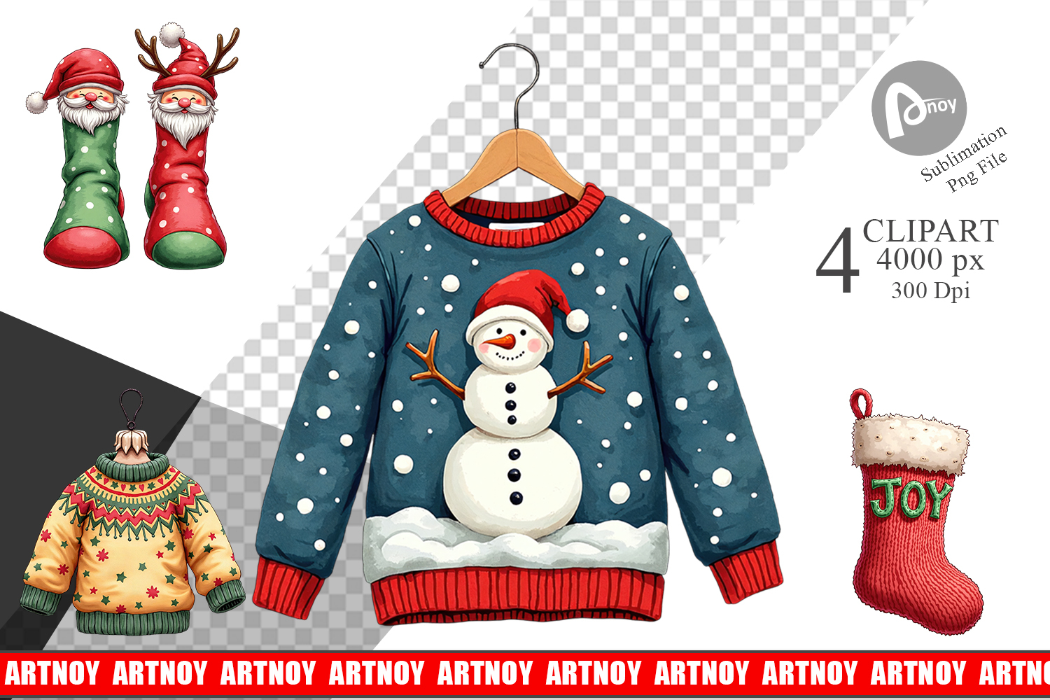Scrapbook Elements Digital Clipart Ugly Sweater Clipart Sublimation Designs Diy Christmas Card Cozy Christmas Sweater Clipart Bundle Png Holiday Party Graphics Uglycute Christmas Png Printable Invite Art