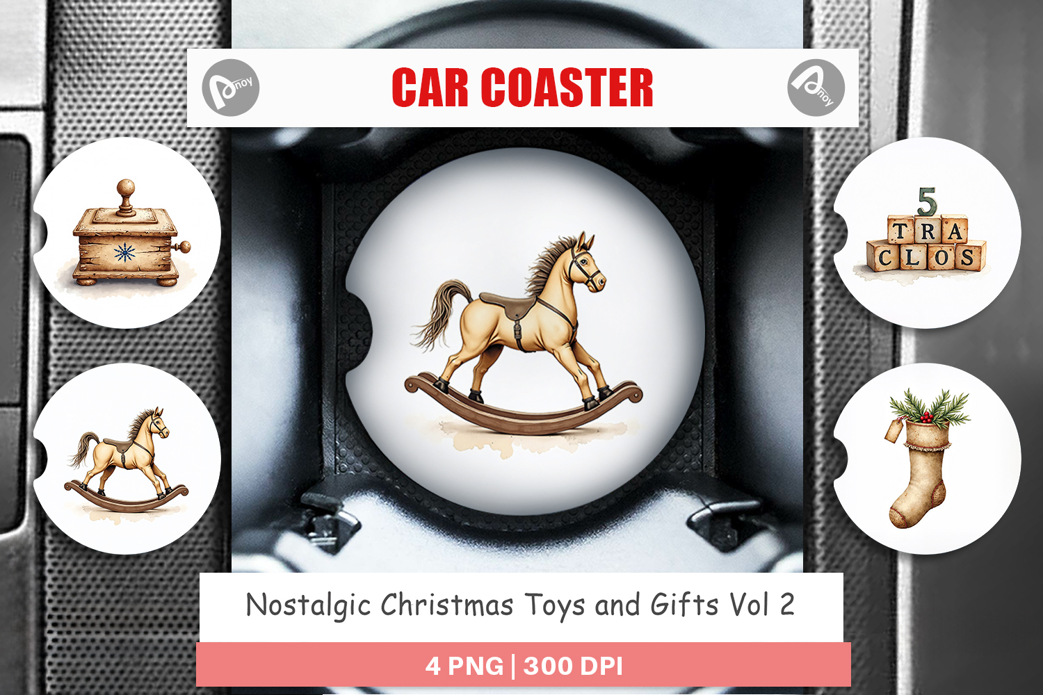 Sublimation Designs Car Coaster Png Car Coaster Sublimation Vintage Christmas Gifts Diy Car Accessory Printable Gift Png Nostalgic Christmas Toys Retro Holiday Theme Christmas Car Gift Holiday Stocking Stuffer