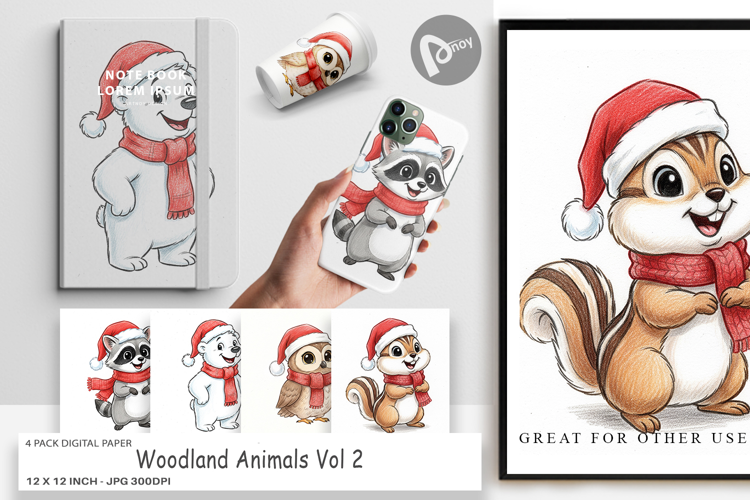 Printable Scrapbook Paper Digital Paper Bundle Junk Journal Pages Winter Scrapbook Rustic Christmas Paper Digital Background Pack Sublimation Paper Background Forest Animal Background Woodland Animals Theme Nature Theme Crafts